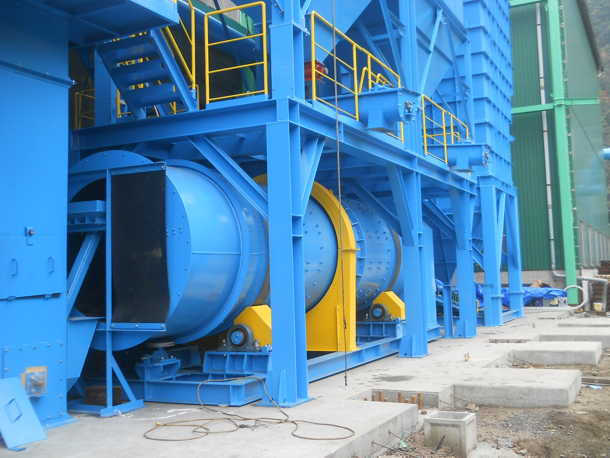 - ドラム内では常時砂が浮遊し、吸引された外気で風選された微粉や砂熱を取り除 きます。